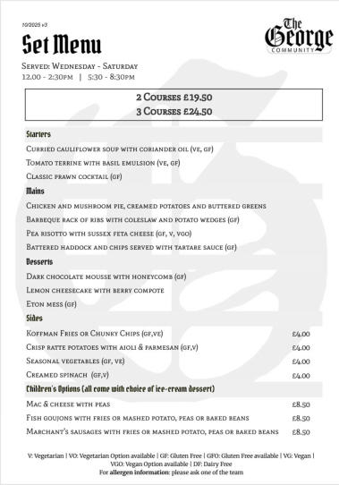 Please note: Desserts may be subject to change.